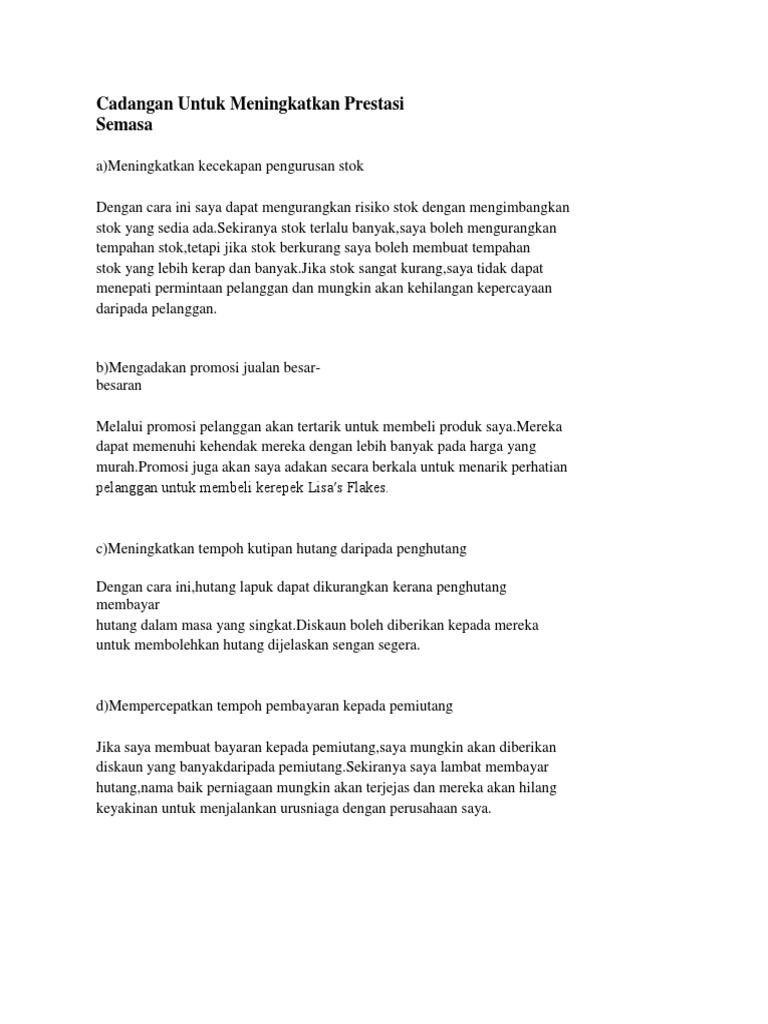 Cadangan Untuk Meningkatkan Prestasi Semasa Dan Jangka Masa Panjang Pdf Document