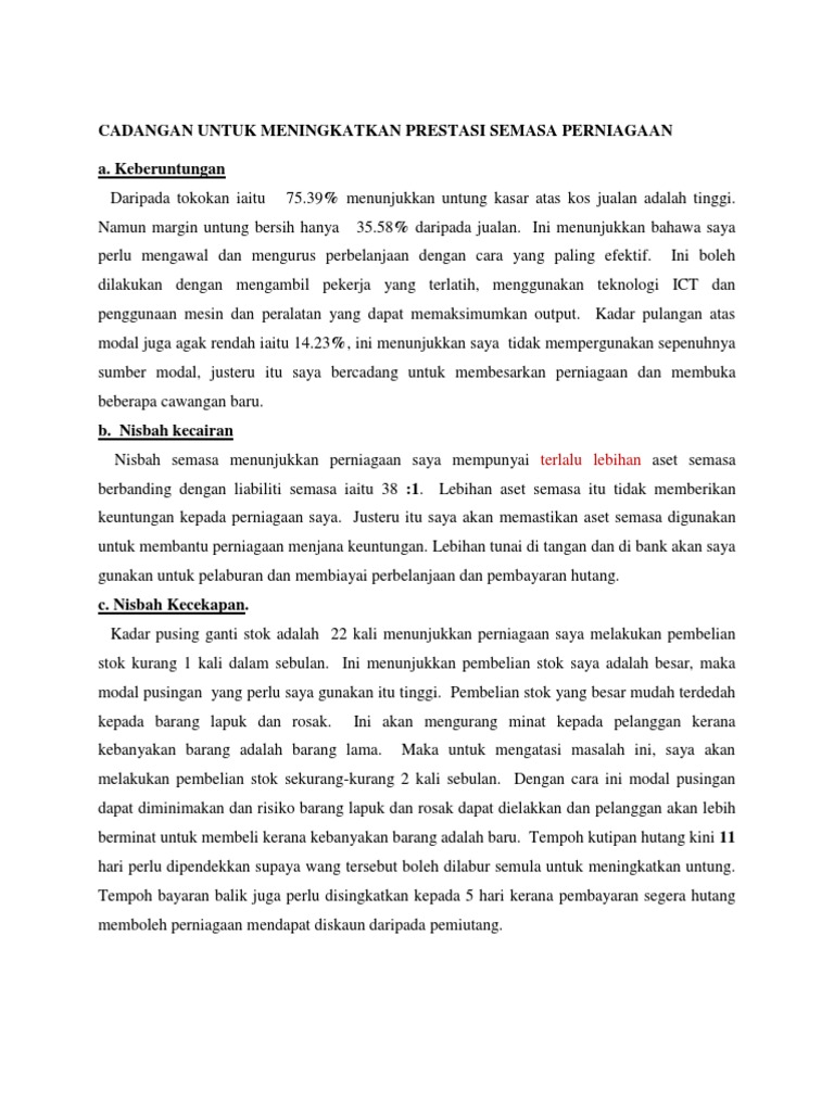 Mengemukakan Cadangan Untuk Meningkatkan Prestasi Semasa Dan Jangka Panjang Perniagaan Folio Spm 2011