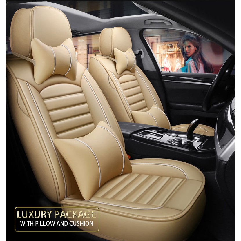 Zen Car Leather Seat Cover Cream Color Front Rear 5 Seater Front Seat 360 Full Covered Shopee Malaysia