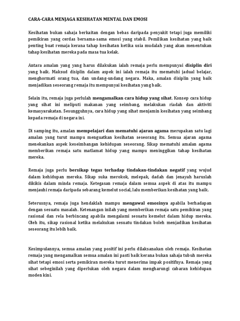 Cara Menjaga Kesihatan Mental Dan Emosi Docx