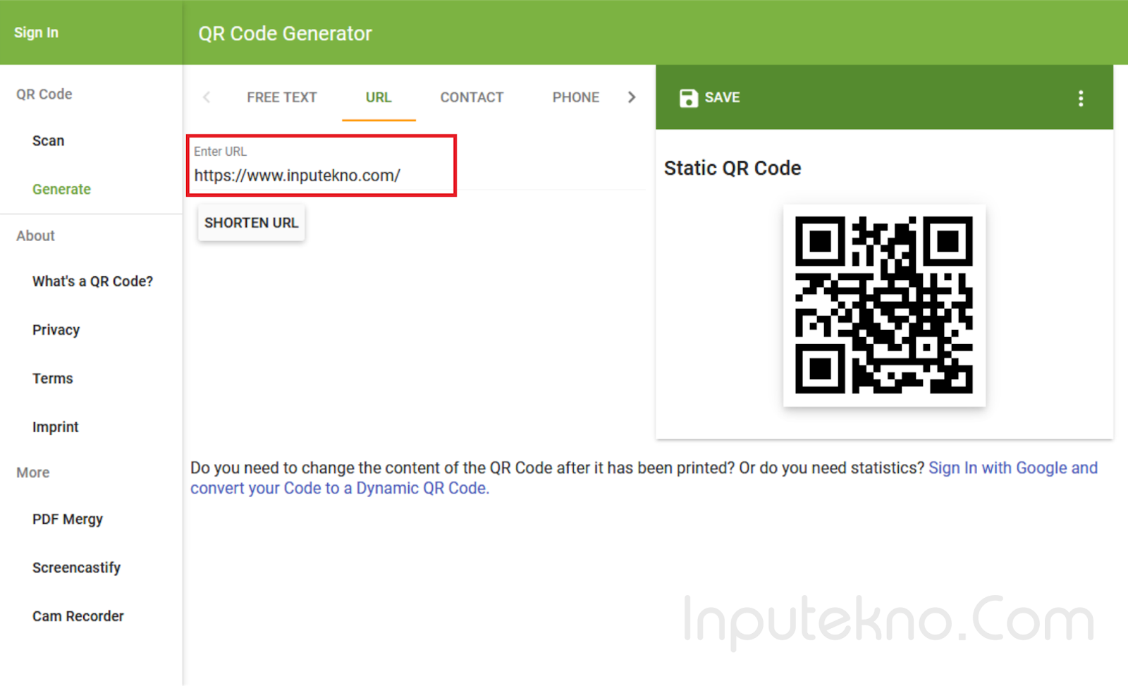Pernah berpikir bahwa cara membuat qr code sulit dan ribet untuk dilakukan. Masukkan link google form yang disalin tadi ke qr code yang dipilih. Laman web tersebut akan auto generate qr code.