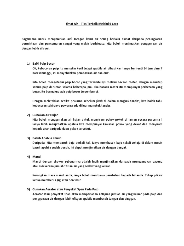 Cara Menjimatkan Air Di Dalam Atau Sekitar Rumah Mohd Isa