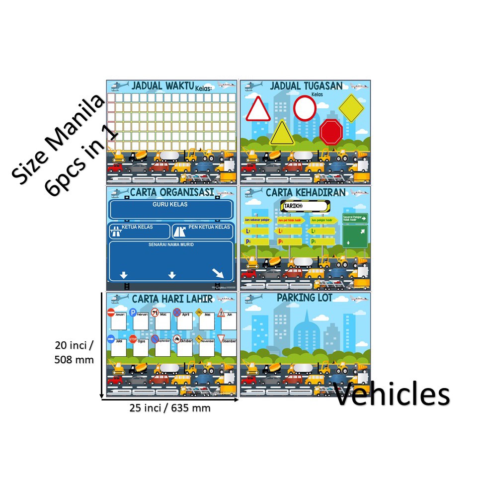 Vehicles Set Keceriaan Kelas Pak 21 Banner Jadual Kelas Carta Kelas Bunting Pintu Alas Meja Shopee Singapore