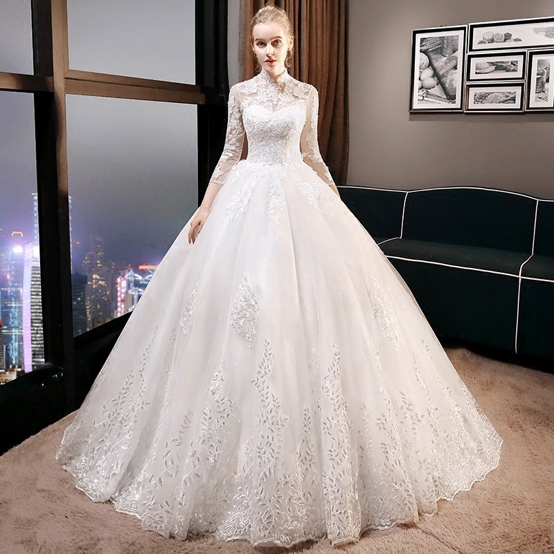 Modern Muslim Wedding Dress Malaysia High Collar Ball Gown Long Sleeves Saudi Arabia Turkey Wedding Dresses Middle East Bride Wedding Dresses Aliexpress