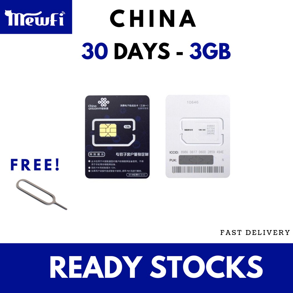 China Sim Card 30days 3gb Social Media 4g China Unicom Prepaid Card Travel Sim Card Shopee Malaysia