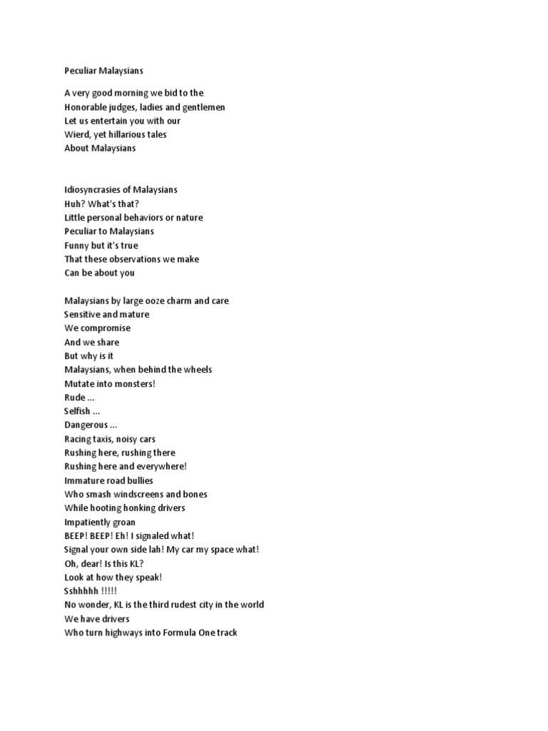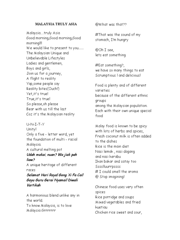Choral Speaking Script For 1d Malaysia Strait Of Malacca