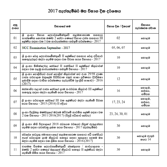 Exams Time Table September 2017 Department Of Examinations Ceylonbook