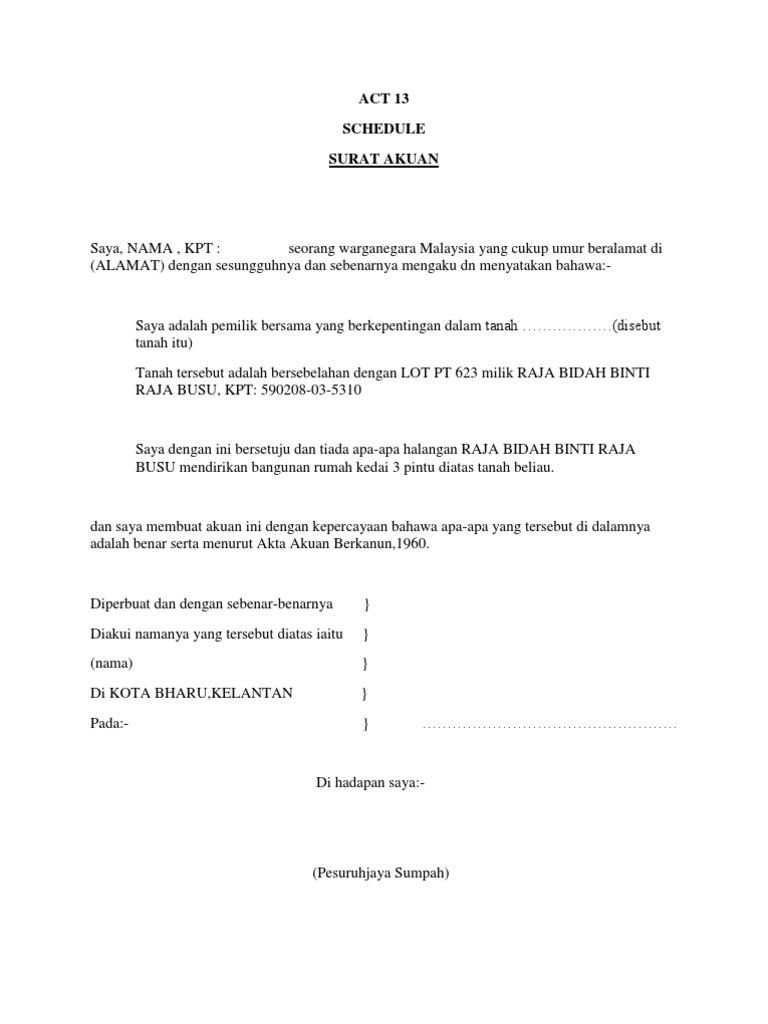 Contoh Surat Akuan Sumpah Zona Ilmu 6