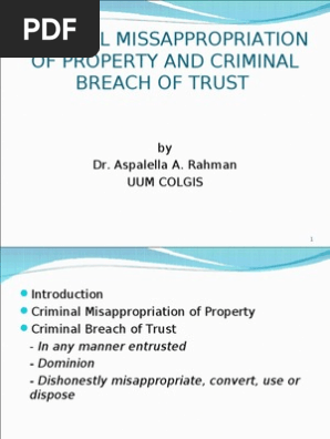 Topic 6 Criminal Misappropriation And Criminal Breach Of Trust Dishonesty Theft