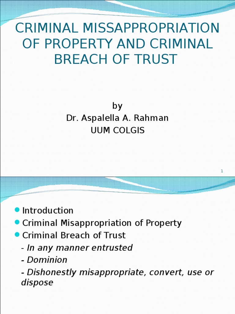 Criminal Misappropriation Of Property Dishonesty Crimes