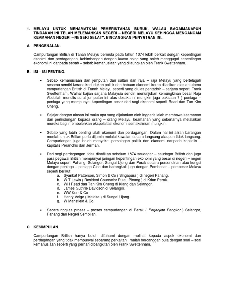 Doc Sejauh Manakah Perjanjian British Di Tanah Melayu Menyebabkan Mereka Menjadi Kuasa Tunggal 1824 1874 Nurul Shafiqah Shafif Academia Edu