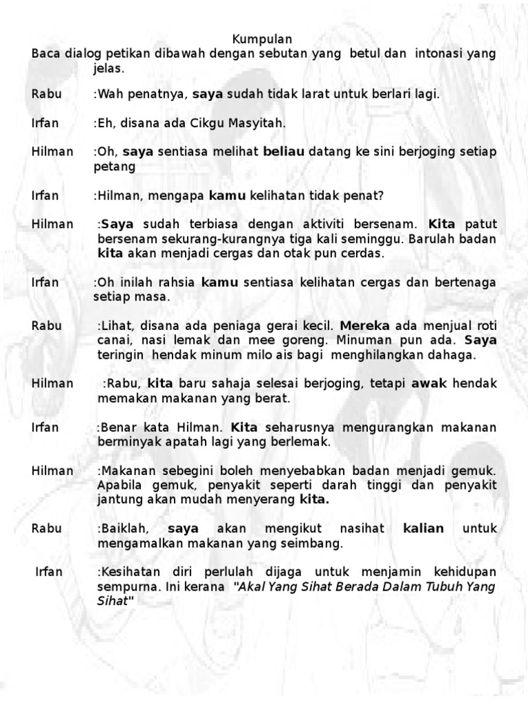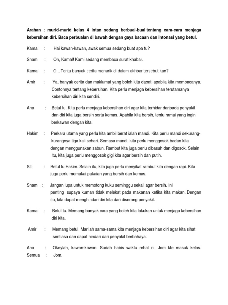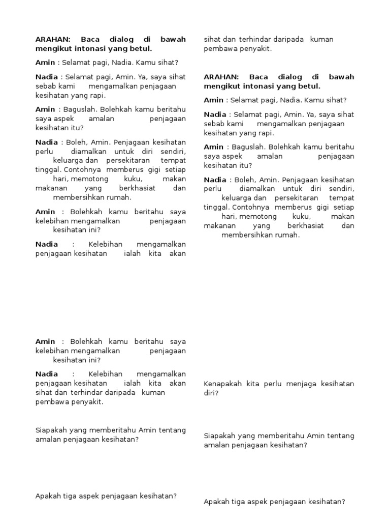 Contoh Karangan Dialog Tentang Cara Cara Menjaga Kesihatan Diri