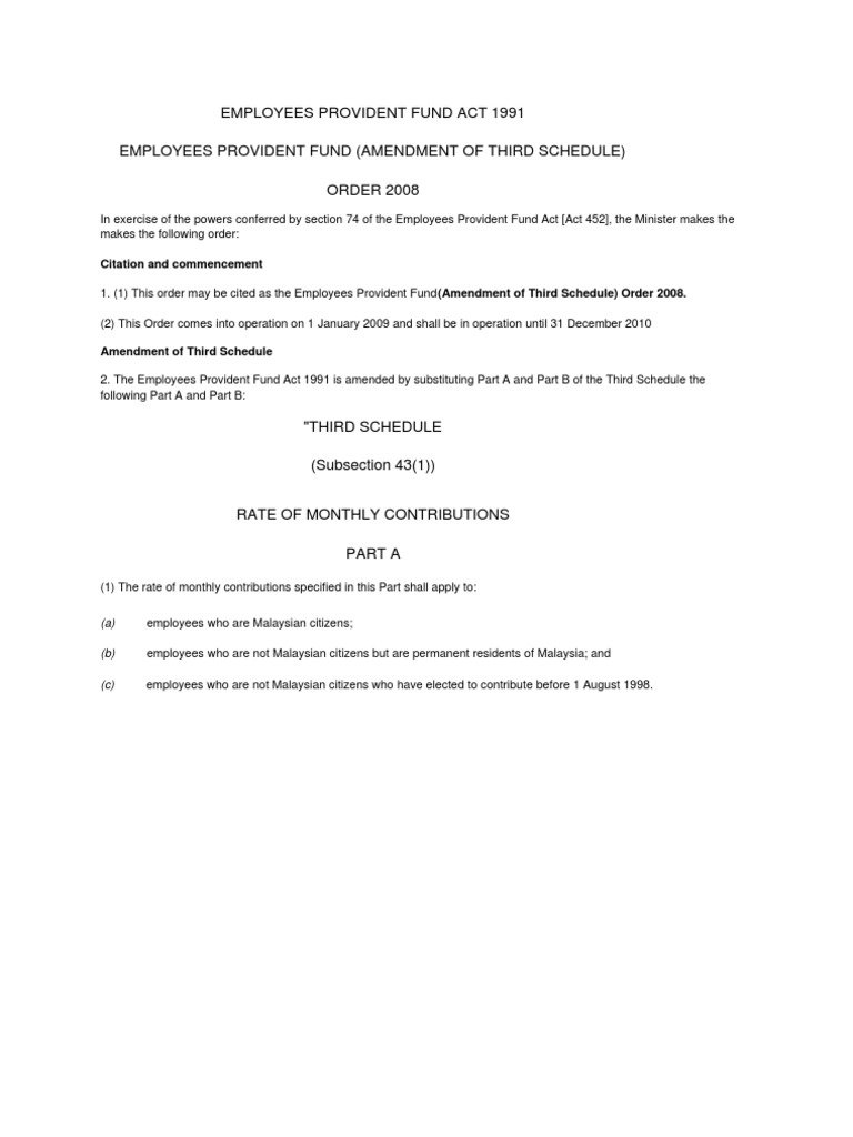 Epf Act 1991 Third Schedule Pdf Employees Provident Fund Act 1991 Third Schedule Sections 43 And 44a Rate Of Monthly Contributions Part A 1 The Rate Course Hero