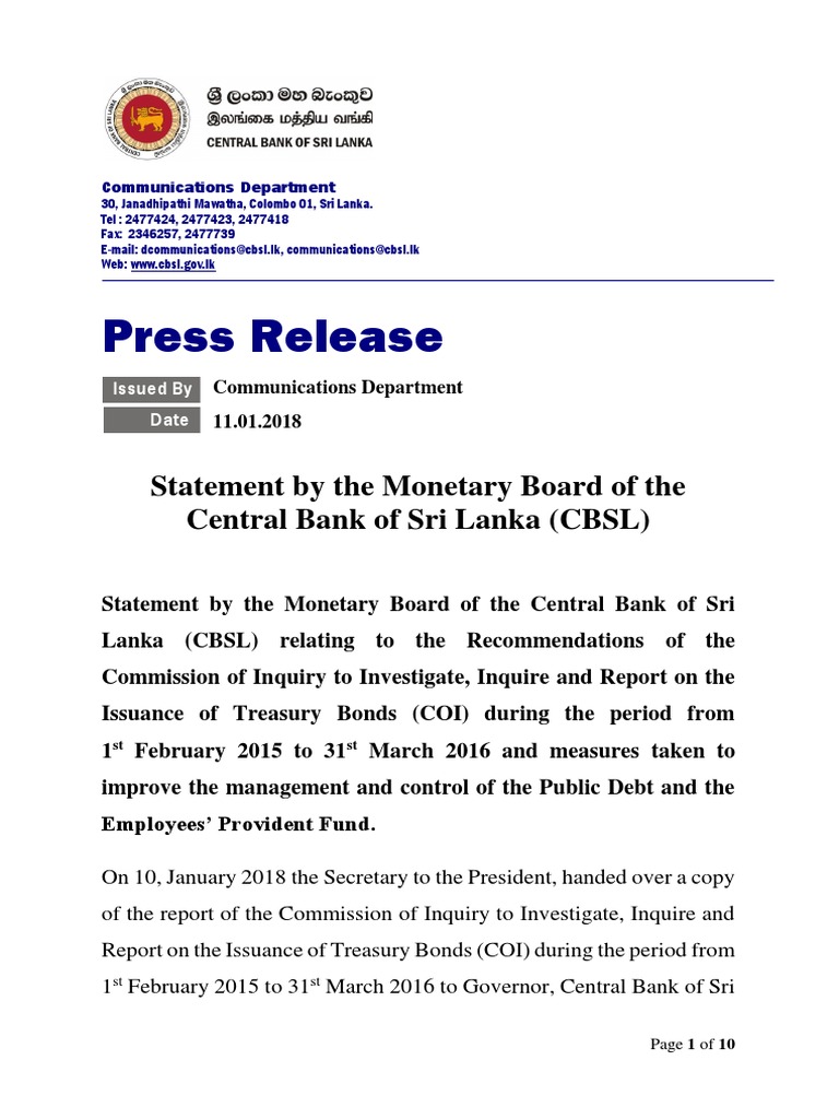 Statement Issued By The Monetary Board On Measures Taken With Respect To The Employees Provident Fund Adaderana Biz English Sri Lanka Business News